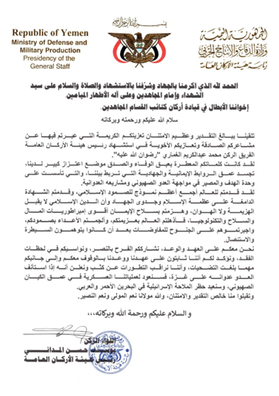 APPENDIX I – HOUTHI CHIEF OF STAFF’S STATEMENT